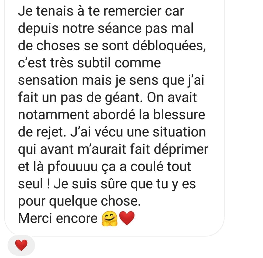 Tu arrêtes de te dévaloriser, de te juger et tu fais la paix avec ton passé. Tu découvres enfin ce que c’est de t’aimer, pour de vrai.